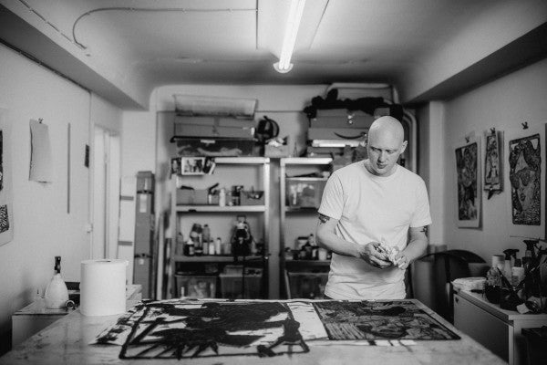 Hamburg-based artist Carsten Wagner focuses on the female face and form, wildlife and subculture. Through relief and intaglio printmaking, he brings his characters and innermost thoughts to life, finding joy in getting his hands dirty while creating surreal and hyper-graphic figurative works. The characters in his work come out of their own imaginary universe: a slow-motion caption of ingredients which develop something that contains our volatile zeitgeist, celebrating counter-culture attitudes and underground moods, as well as feelings and conflicts that appeared since humans were present.