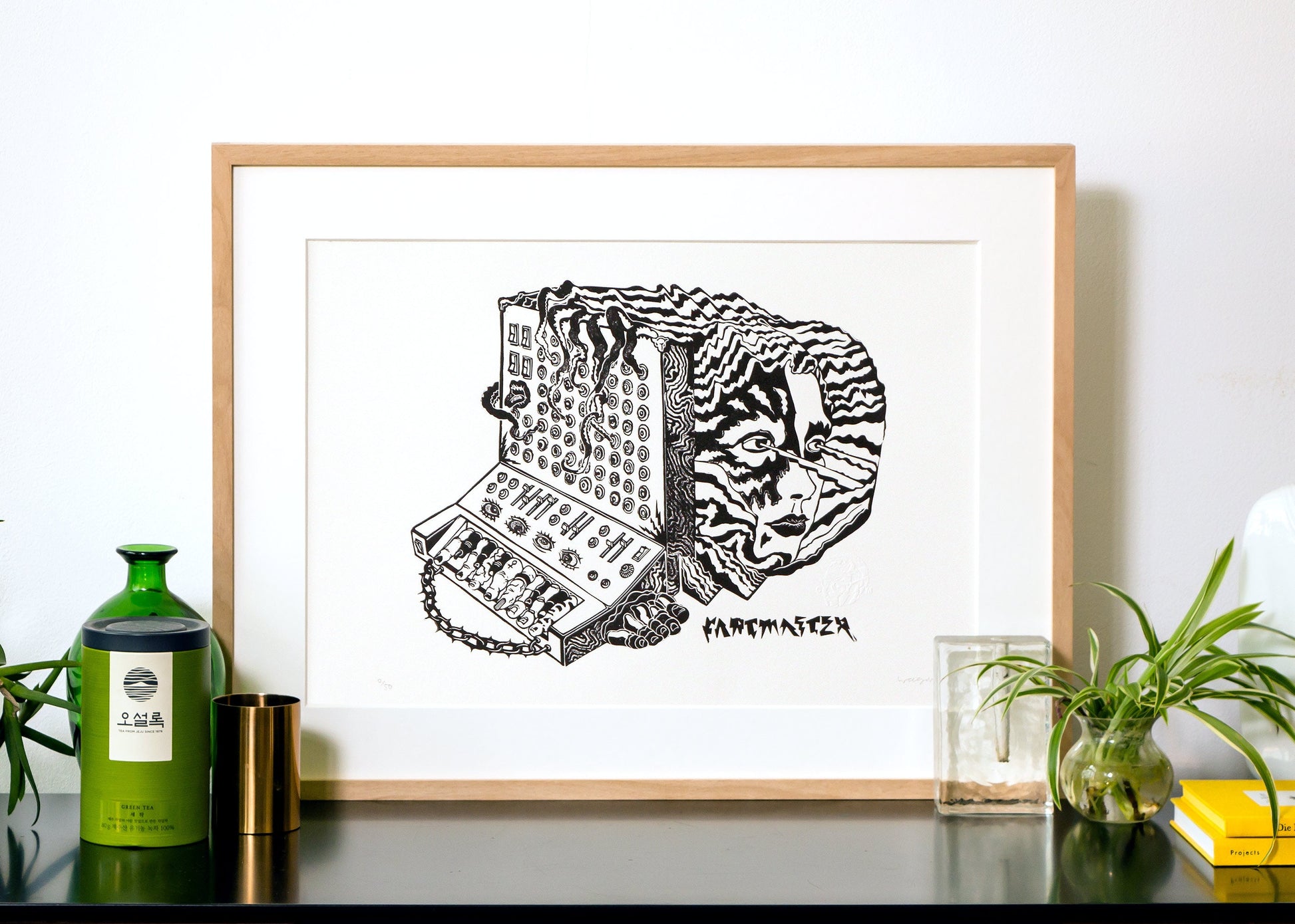 Fartmaster (2021), etched linocut.